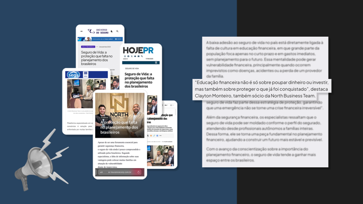 Nossa atuação já ganhou espaço na imprensa, com conteúdos publicados em portais relevantes, reforçando a credibilidade da North no mercado de seguros e consórcios.